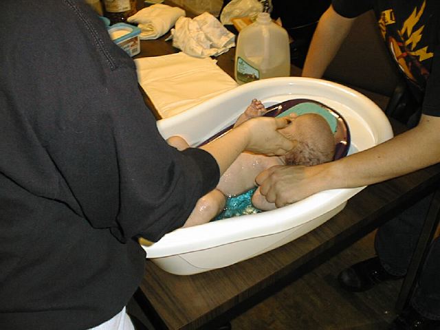 First bath, February 13, 1999